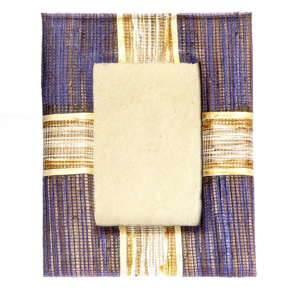 Bambusz és textil felhasználásával kézzel készült egyedi stílusú képkeret üveglappal. Kitámasztható, vagy akár falra is akasztható! 9x13cm-es képek számára Méretei: 15x19x1cm
