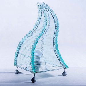 Hullám alakú ragasztott üvegből készült egyedi lámpa Baliról